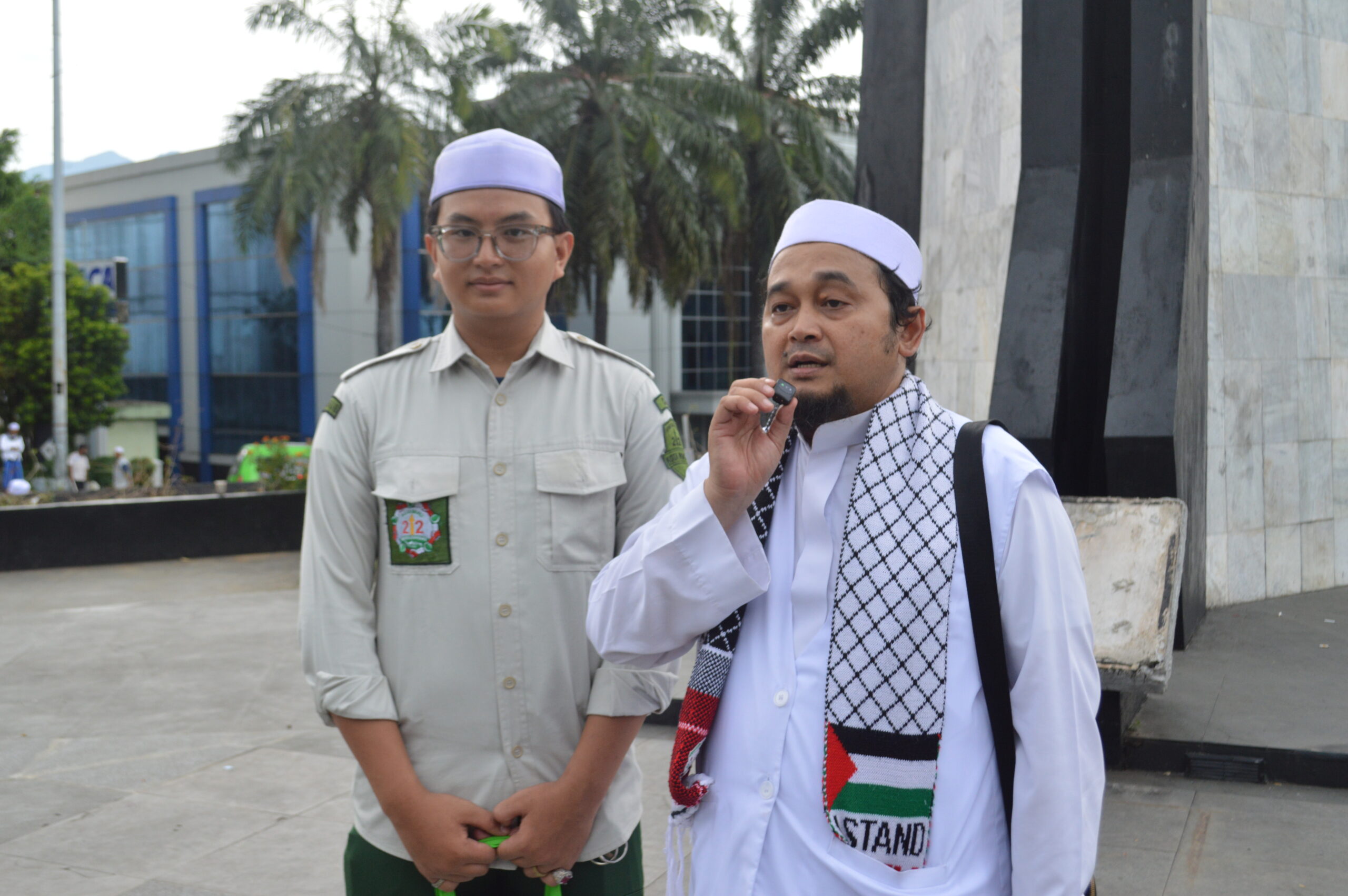 “Alhamdulillah pada hari Jum’at 21 Syawal 1447 bertepatan 10 April 2026 telah sukses telah telaksana aksi damai Bela Palestina, bela Al-Aqsa di Masjid Raya berjalan menuju Tugu Kujang,” ujarnya.